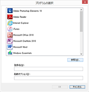 上部に表示されるソフトウェア一覧から、連携したいソフトウェアを選んで[OK]をクリックすると、アイコンが追加されます。連携したいソフトウェアが一覧に表示されない場合は、[参照]をクリックし、ソフトウェアの保存先を選択してください。