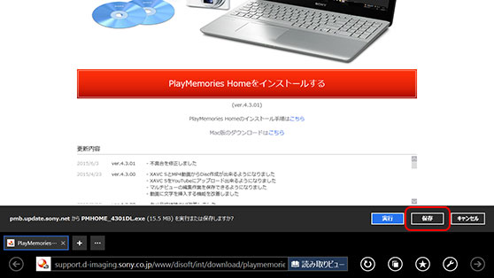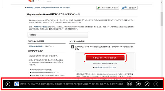 ここでは、Windows ストアアプリ版とデスクトップ版で、PlayMemories Homeのインストーラーをダウンロードする方法を例にしてご説明します。