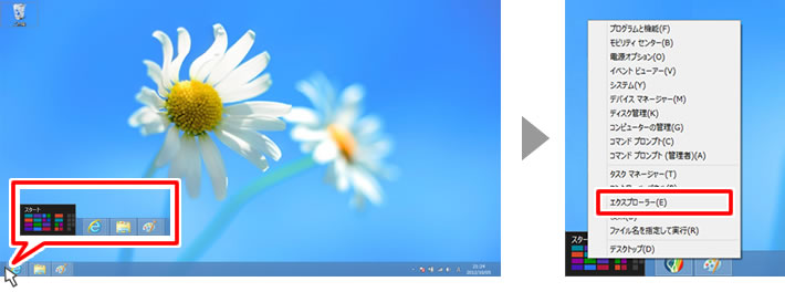 「デスクトップ」画面より「エクスプローラー」を起動します。