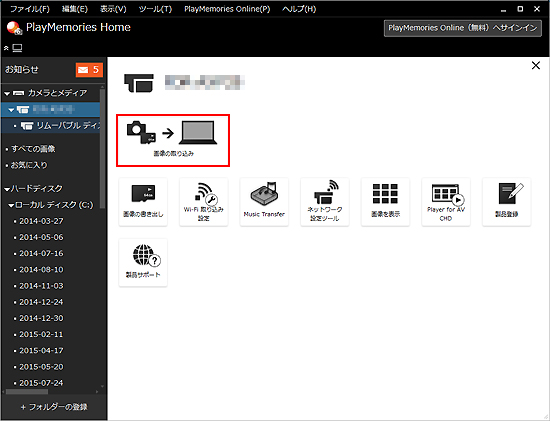取り込みが完了すると、外付けハードディスクの指定したフォルダーに画像が保存され、PlayMemories Homeで再生したり、編集したりすることができるようになります。