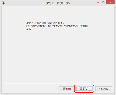 • 「ダウンロード用のURLが発行されました。」と表示されたら、[完了]を選択します。