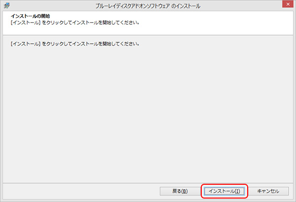 「ブルーレイディスクアドオンソフトウェアのインストール」が開始されます。しばらくお待ちください。