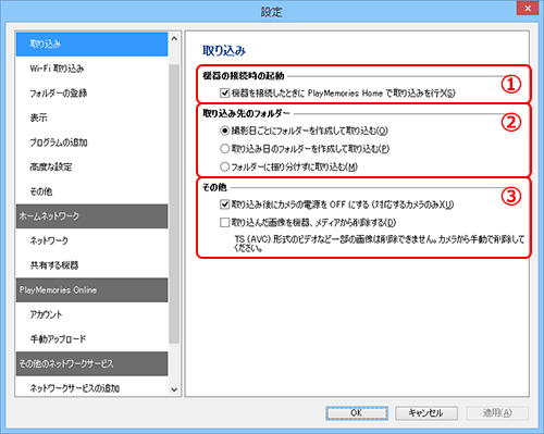 また、PlayMemories Homeに取り込んだ画像を、カメラやメモリーカードなどから自動的に削除することもできます(*1)。