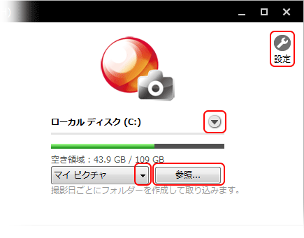 初期設定ではマイピクチャに撮影日ごとにフォルダーを作成して取り込む設定になっています。