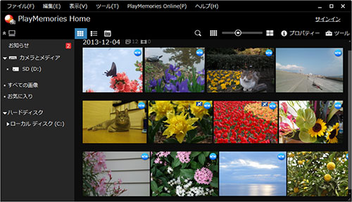 取り込みが完了すると、PlayMemories Home上に画像が表示されます。
