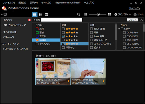検索画面から、星の数やラベルで画像を絞り込むことができます。