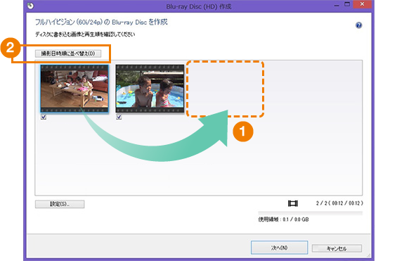 画像を選択した順番とは関係なく、はじめは撮影日時順に並びます。