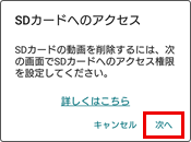 「SDカードへのアクセス」のダイアログが表示された場合の設定方法や、SDカードが表示されない場合の手順は、以下をご確認ください。