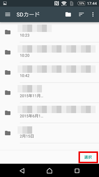 - 画面上部に「SDカード」が表示されている状態で、画面右下の[選択]を選択する
