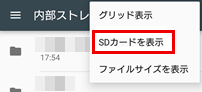 - 内部ストレージの画面右上のメニューアイコンを選択する