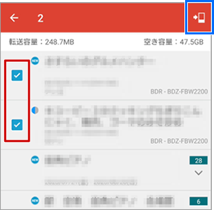から[おでかけ転送済み番組]を選択し、番組が転送されたことを確認する