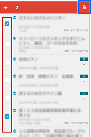 から[削除]を選択する- 削除したい番組の左側に表示されるボックスにチェックを入れ、