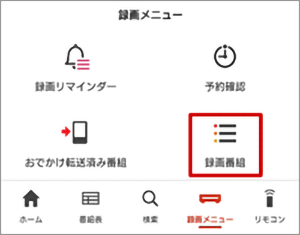 をタップし、[録画番組]を選択する