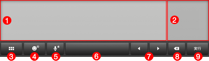 指先などで直接文字を手書きするエリアです。左端から入力された文字が認識されます。