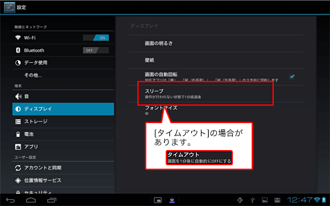 > 使いかた > 画面がオフになるまでの時間を変更する