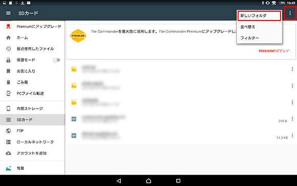 - * Xperia Z4 TabletのAndroid 6.0.1、「File Commander」アプリのバージョン3.8.14500の画面でご説明します。
