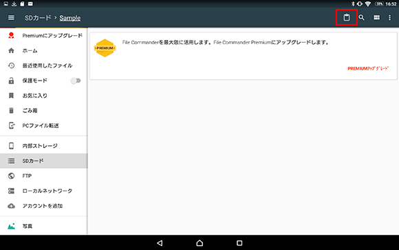 - File Commander(ファイルコマンダー)のバージョンによっては、広告が表示される場合があります。広告を非表示にするには有料版(ファイルコマンダー プレミアム)へアップグレードが必要ですが、広告の表示される無料版でも、ファイルのコピーや移動などの一般的な機能はお使いいただけます。