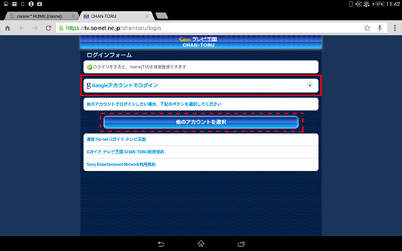 - Chromeのタブが増え、「CHAN-TORU」のログインフォーム画面が表示されるので、ログインしたいアカウントをタップします。