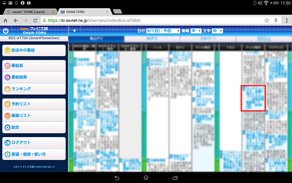 - 番組表が表示されるので、録画したい番組をタップします。