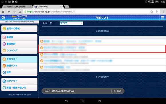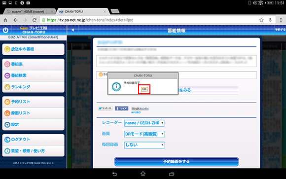 手順5 「CHAN-TORU」で録画予約する