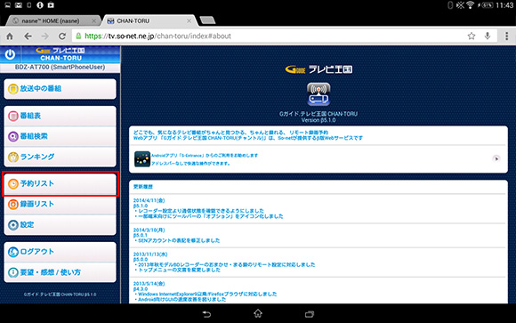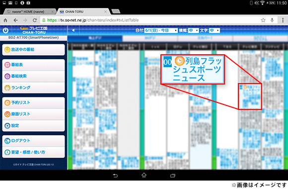 タブレットから、「CHAN-TORU」を使って、家庭内だけでなく、外出先からもテレビ番組の録画予約やコンテンツ管理ができます。ここでは「CHAN-TORU」を使って"ナスネ"にリモート録画予約する方法をご説明します。