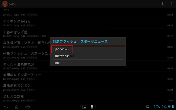 nasne(ナスネ)™で録画した番組をタブレットにワイヤレスおでかけ転送をする