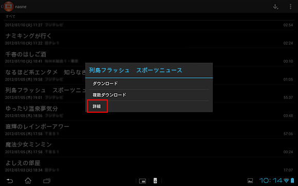 - 選択した番組名が表示されたら、[詳細]をタップします。