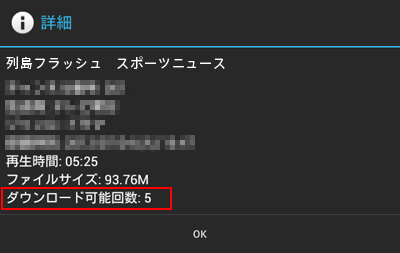 - 「詳細」が表示されるので、「ダウンロード可能回数」に表示されている数字を確認します。