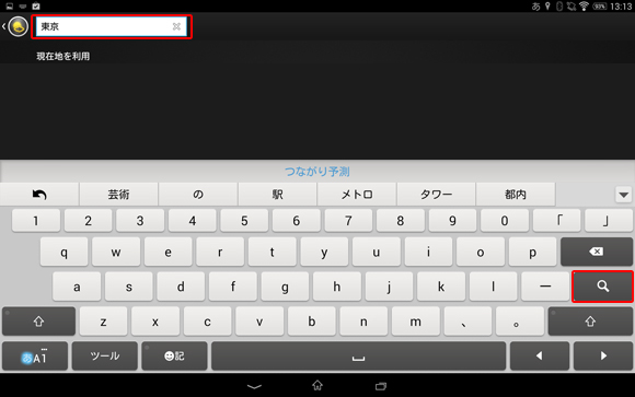 今回は例として「東京」と入力して、キーボードの