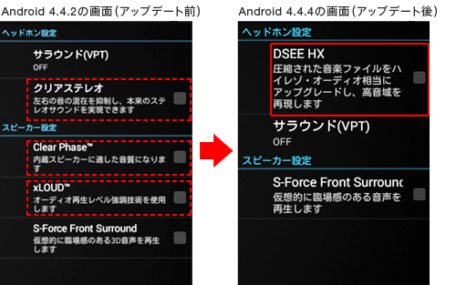 「クリアステレオ」「Clear Phase」「xLoud」の設定項目が、ほかの最適化項目に統合されるためなくなります。