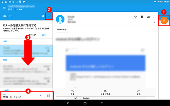 受信トレイを下方向にスワイプすると、新規メールを受信できます。