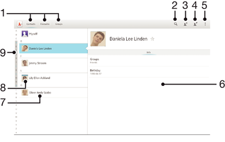 ショートカットタブ 連絡先を検索します 連絡先を作成します 連絡先の詳細を編集します その他の機能を開きます 連絡先の詳細表示エリア 連絡先をタップして、詳細を表示します 連絡先のサムネイル画像 連絡先を閲覧するためのインデックス
