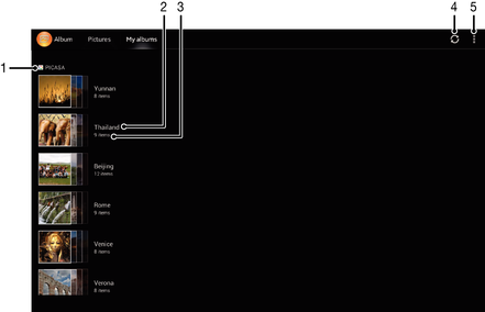 - 接続をタップします。オンラインサービスにアップロードした、すべての使用可能なオンラインアルバムが表示されます。