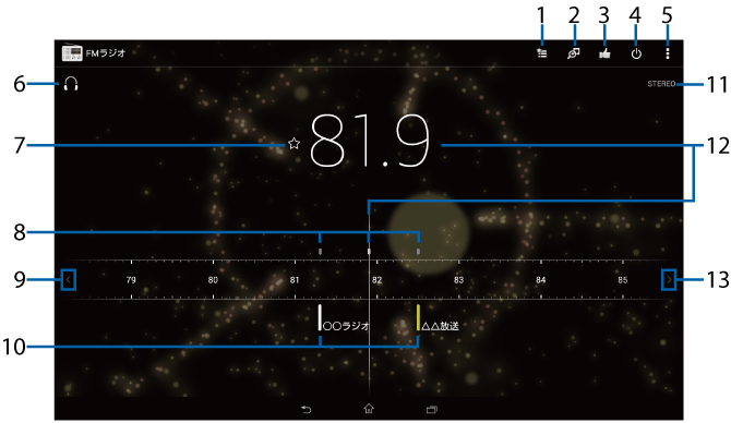 →[FMラジオ]をタップするか、ステータスバーの左側を下にドラッグ→[FMラジオ]をタップします。 日本国内のFMラジオを聴取できないときは、