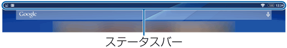 ステータスバーは画面上部に表示されます。ステータスバーにはタブレットデバイスの状態