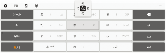テンキー | 携帯電話と同じ配列のキーボードです。キーを繰り返しタップして文字を選択します |
