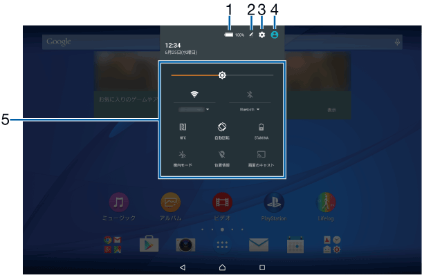 通知パネルを下にドラッグしても表示されます。 クイック設定パネルを閉じるには、