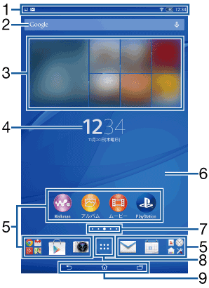 変更したいホーム画面に切り替えて、 ホーム画面上のアイコンがない部分をロングタッチ→