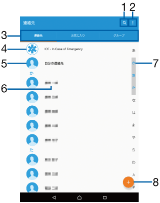 アルファベット順などで検索します。 新しい連絡先の追加アイコン