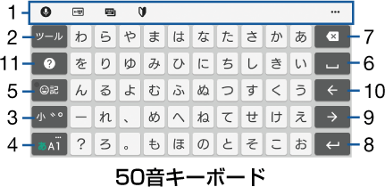 50音キーボード | 50音順/アルファベット順に並んだキーボードです。 |