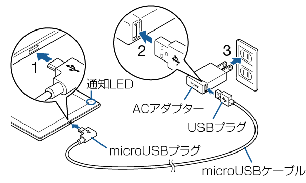 充電には本体付属のACアダプターやmicroUSBケーブルをご使用ください。対応充電器以外をご使用になると、