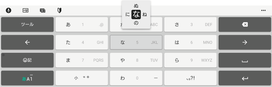「な」はタップするだけで入力できます。「に」は左、