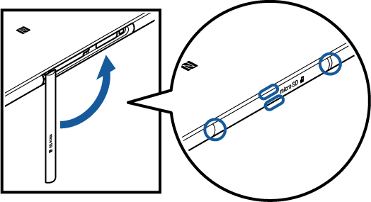 故障の原因となります。 microSDカード挿入口カバーが開いている状態で水などの液体がかかった場合、