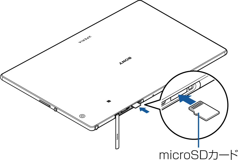 またはmicroSDカード内のデータを取り込み中に、 microSDカードを取り外したり、 タブレットデバイスの電源を切ったりしないでください。データの消失、 故障の原因となります。