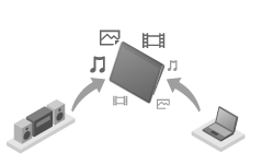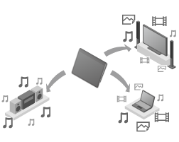 DLNA(【詳細】)対応のサーバー(コンピューターなど)と接続すると、サーバーに保存されている写真や音楽、ビデオなどのコンテンツをタブレットデバイスで再生できます。