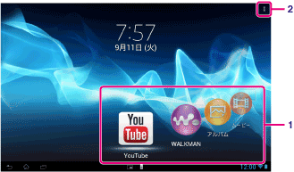 「アプリセレクター」はタブレットをドックスピーカーSGPSPK1(別売)にセットすると自動的に起動します。