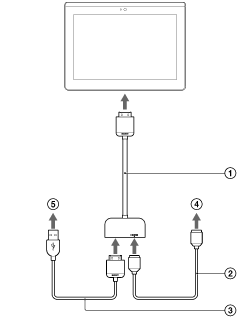 HDMIアダプターケーブルに付属のマルチポート専用USBケーブルSGPUC2をつないでACアダプターにつなぐ。
