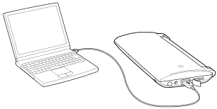 1. ソニー製マイクロUSBケーブルS型SPA-US2/SPA-US15(別売)、または市販のMicro-USBケーブルを使って、タブレットデバイスをコンピューターにつなぐ。