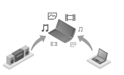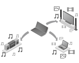 DLNA(【詳細】)対応のサーバー(コンピューターなど)と接続すると、サーバーに保存されている写真や音楽、ビデオなどのコンテンツをタブレットデバイスで再生できます。