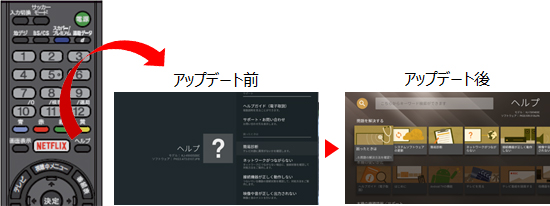 Android TVの一部対象機種において、2017年3月9日及び4月20日にお知らせしたソフトウェア更新により、以下のような点が変更されました。